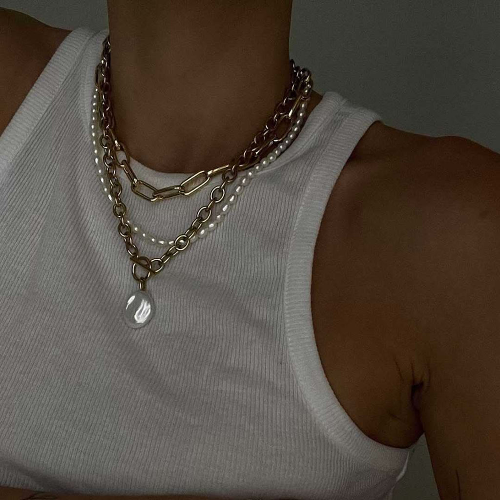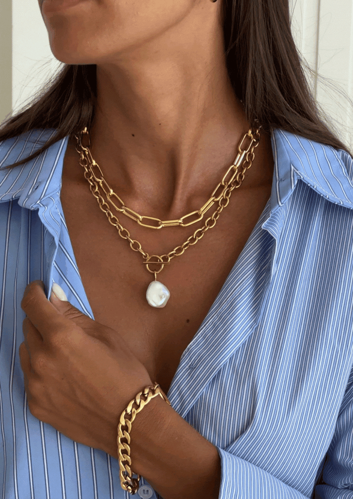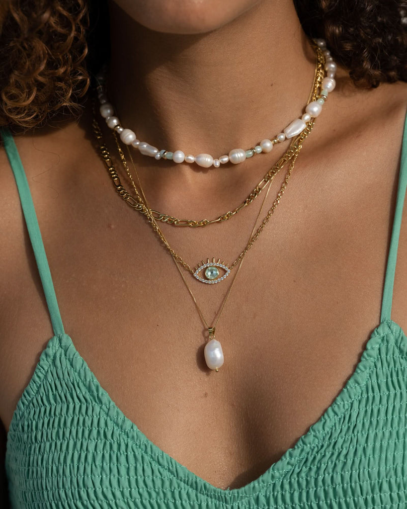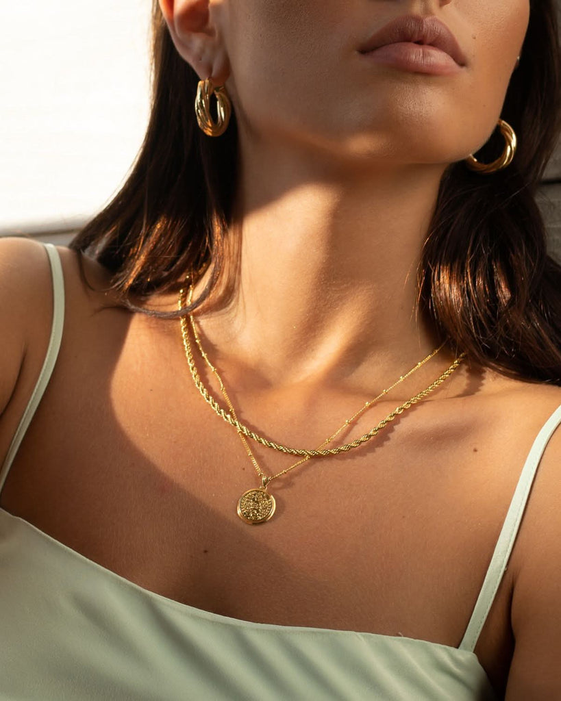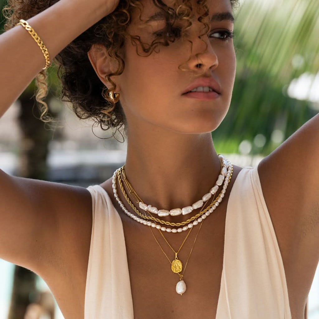 Design your own layered necklace stack. Choose any three necklaces and a pair of matching earrings, and get 15% off your order. All pieces can be styled separately.