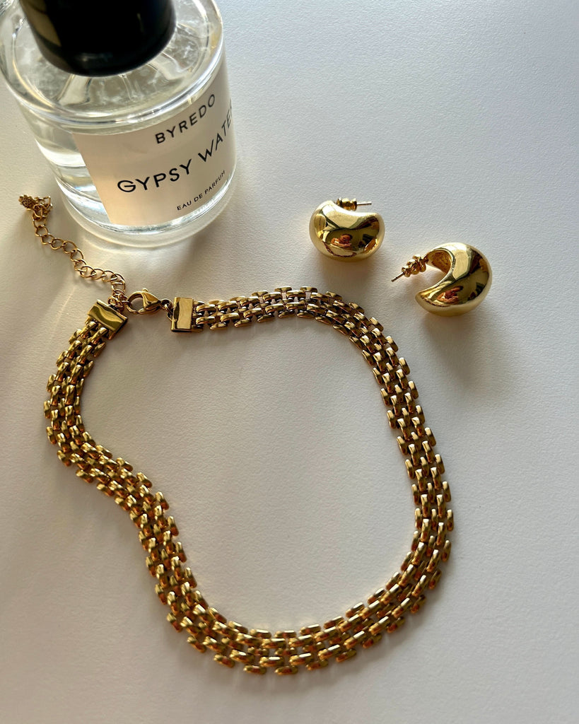 Elevate your look with Gaia Gold Chain Choker, the statement choker necklace that adds modern edge to any outfit. This choker features a vintage-inspired wide gold chain that radiates timeless elegance and understated sophistication.